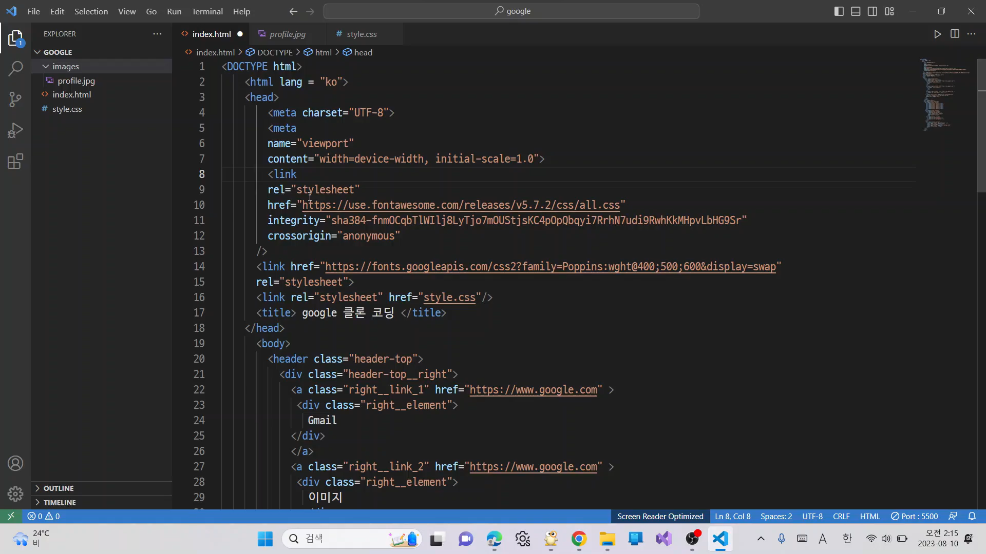 5차 세미나 주제는 "구글 사이트 클론 코딩" 입니다.