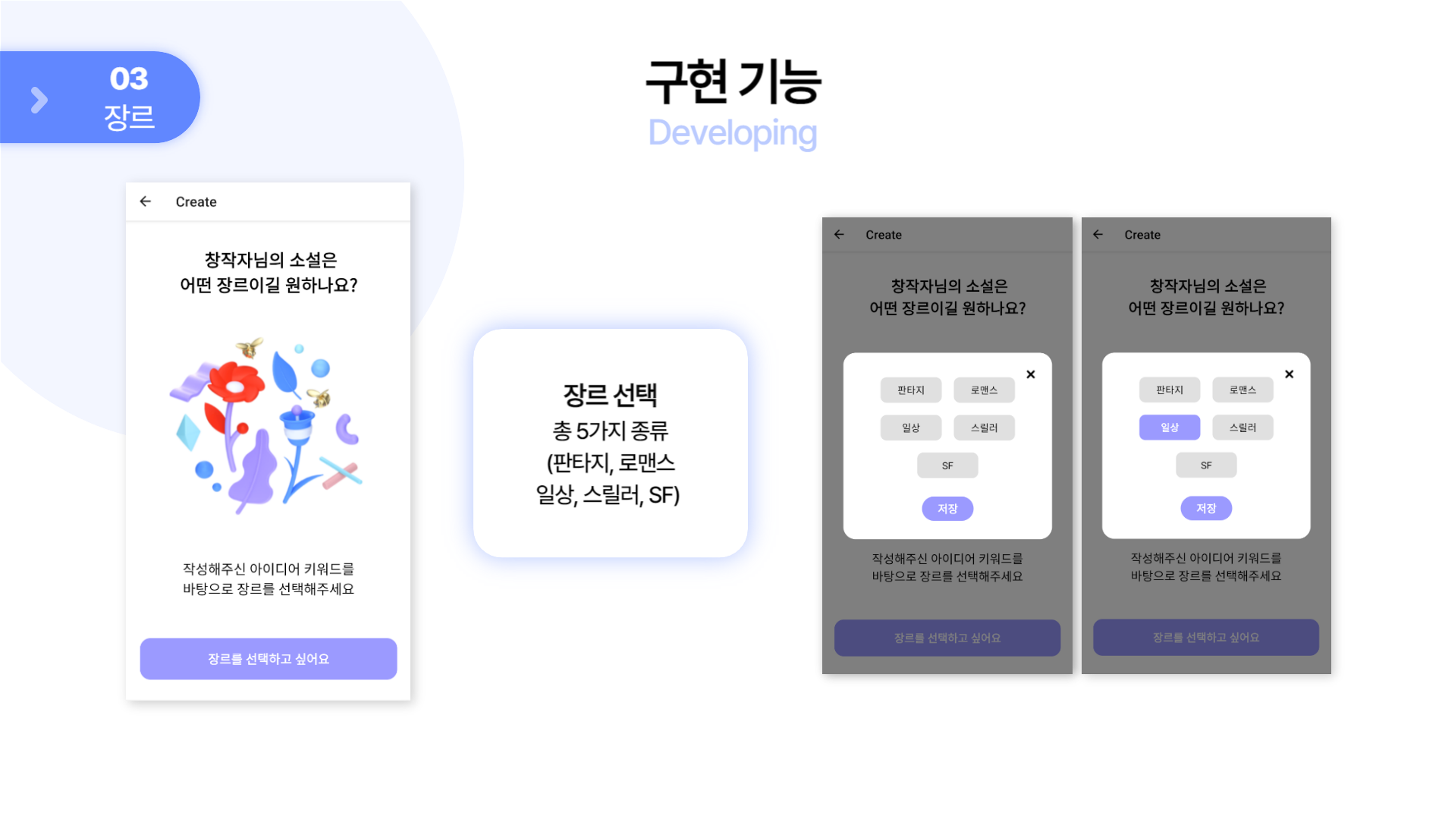 프로젝트 설명 : 사용자가 원하는 장르, 테마나 줄거리를 선택하면 AI를 기반으로 추천 플롯을 제공하여 쉽게 소설을 창작하고 공유하는 서비스