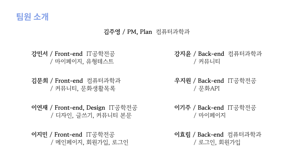 프로젝트 설명 : 다양한 분야의 문화 생활을 공유하고, 개인 맞춤형 콘텐츠를 추천받아 문화 생활의 다양성을 경험할 수 있는 플랫폼