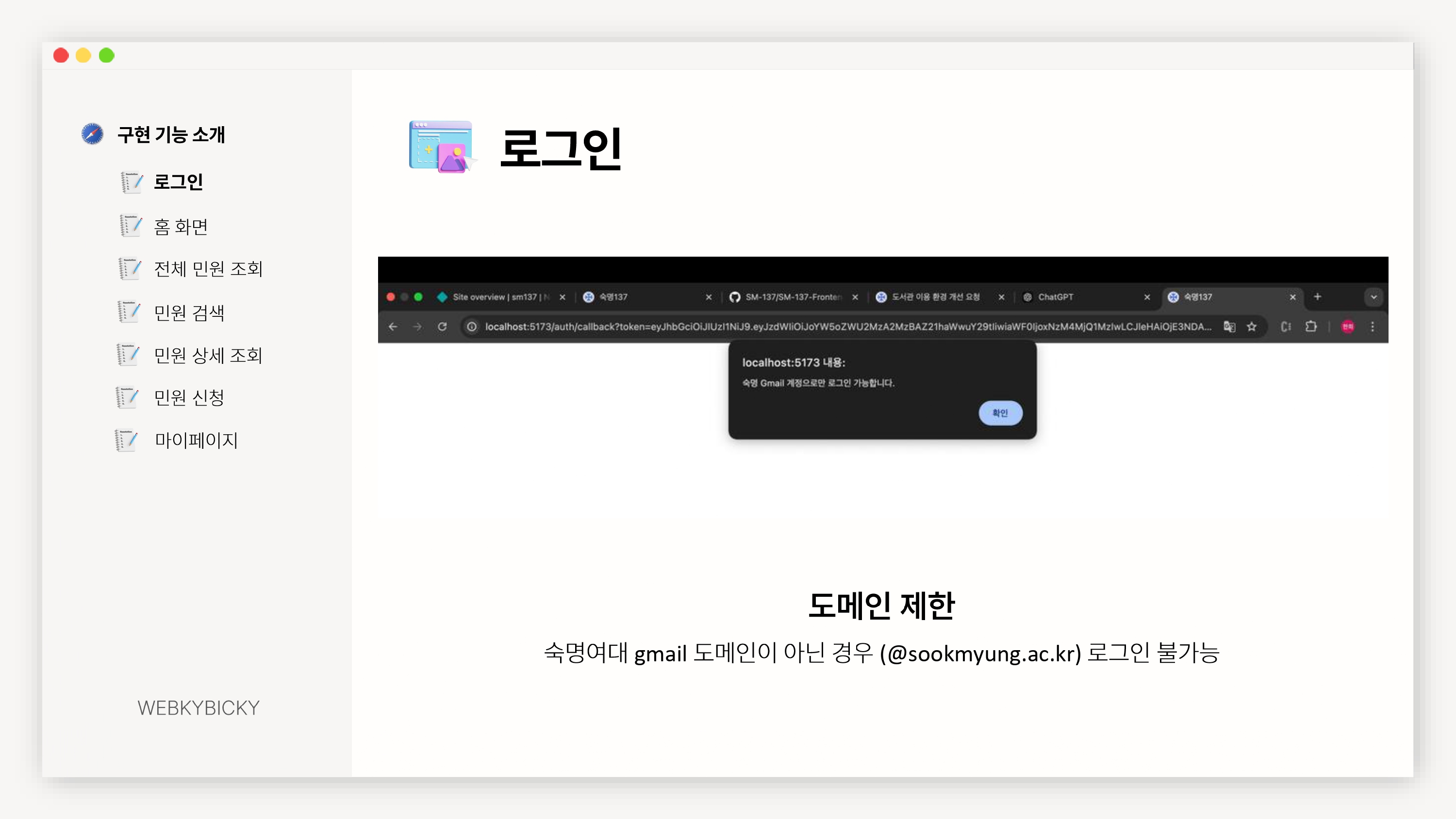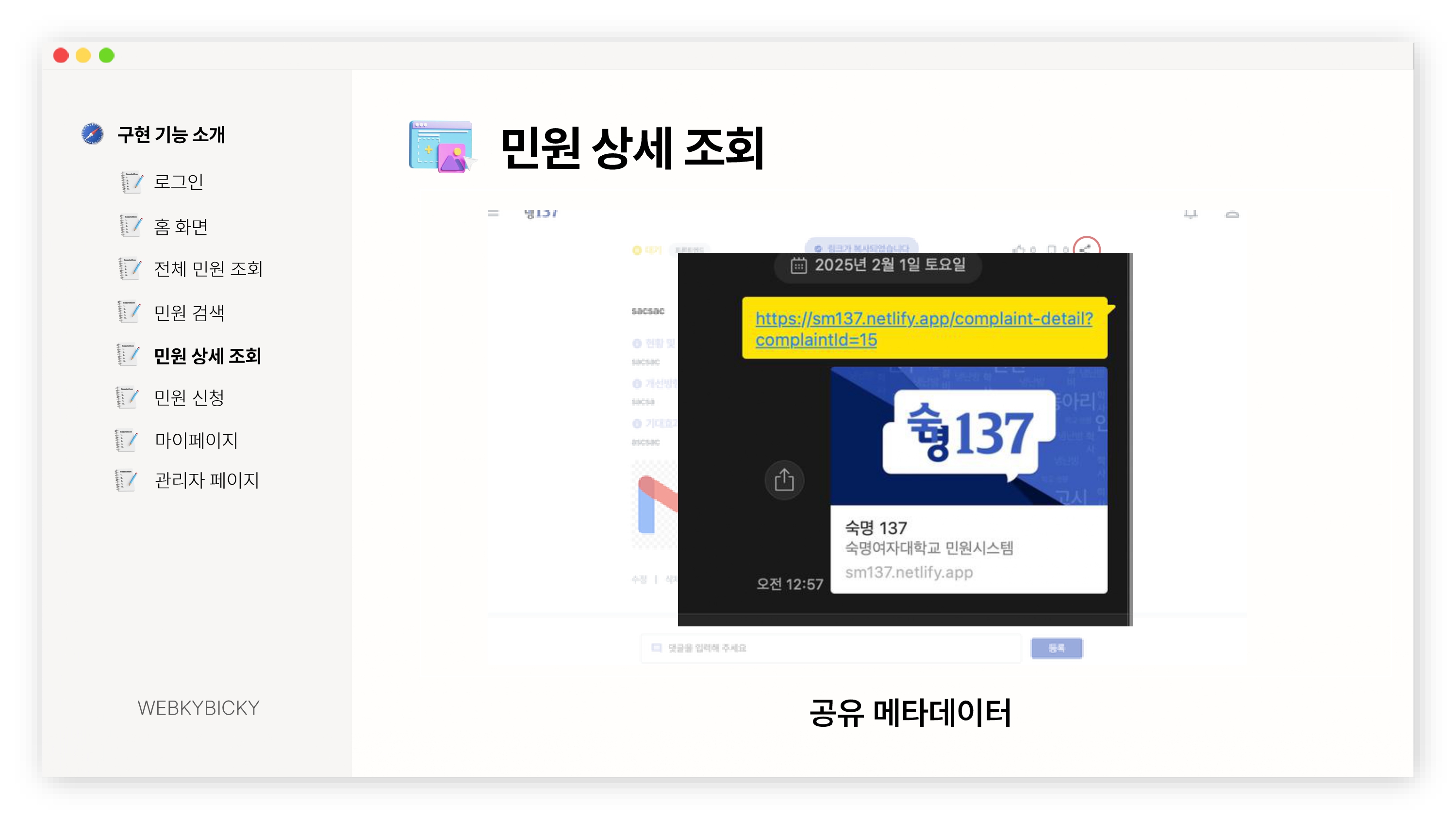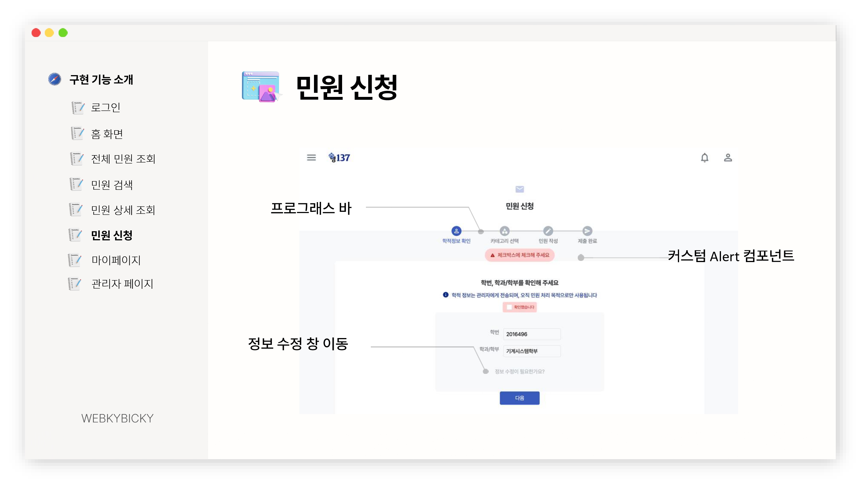 프로젝트 설명 : 기존 숙명여대 민원 시스템의 효율성을 개선한 웹페이지