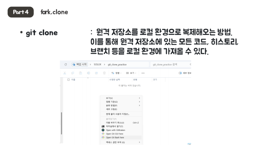 마지막 파트에서는 깃허브에서 자주 사용되는 fork와 clone의 개념을 다루었습니다.