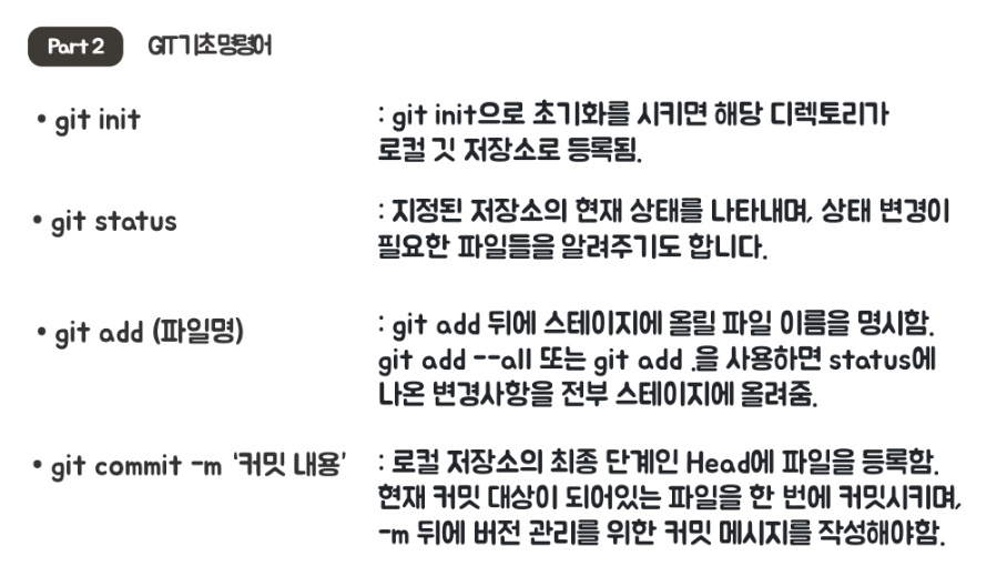 기초 설정을 마친 후에는 본격적으로 깃 명령어에 대해 배워보는 시간을 가졌습니다.