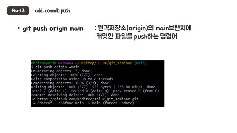 프로그래밍을 한다면 반드시 익혀야 할 깃과 깃허브의 기본적인 흐름을 몸소 익힐 수 있었던 유익한 세미나였습니다 :)