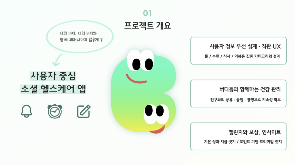 프로젝트 설명 : '나의 바디, 너의 버디와 함께 채워나가지 않을래?' - 사용자 중심 소셜 헬스케어 앱