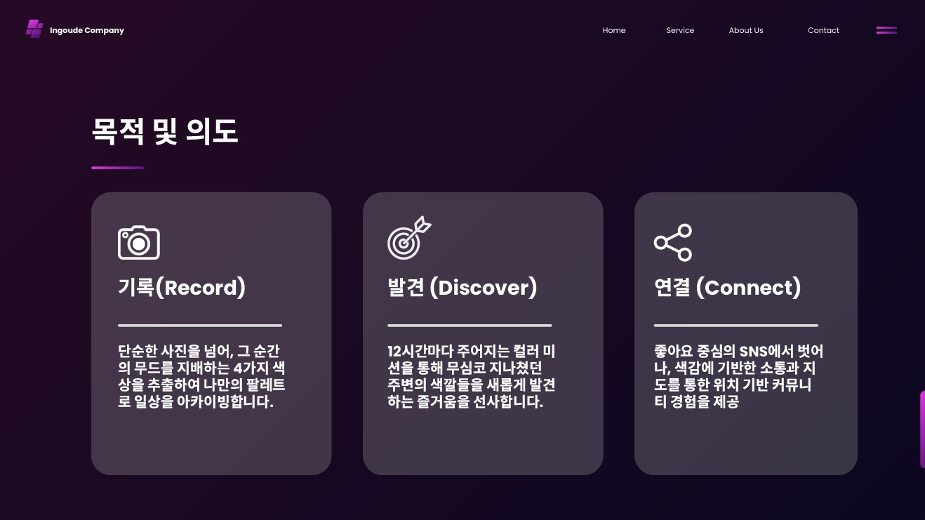 프로젝트 설명 : 컬러워크로 발견한 일상 속 색을 나만의 팔레트로 기록하고 공유하는 컬러 기반 SNS 앱